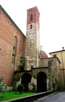 mura romane). L'edificio occupò quindi uno degli isolati periferici, di dimensioni anomale, delimitati a sud dal decumano oggi ricalcato dalla via S. Giorgio e a nord, dall'andamento irregolare delle mura su questo lato (Lucca-