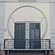 Al primo piano sul prospetto principale si aprono una porta finestra con terrazza e due finestre laterali inserite in una forma circolare aggettante. La ringhiera in ferro battuto della terrazza è decorata con motivi che richiamano la meccanica automobilistica. Le finestre laterali presentano due elementi decorativi a forma di balestra di automobile. Gli stessi motivi decorano le aperture del prospetto ovest.